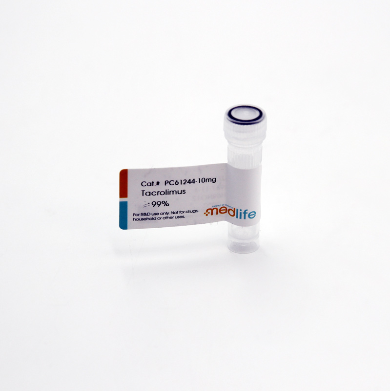 Tacrolimus(又称FK506或 Fujimycin)是一种从土壤放线菌Streptomyces tsukubaensis中分离得到的大环内酯类免疫抑制剂,属于钙调神经磷酸酶(calcineurin)抑制剂家族。其化学结构为含23元大环内酯骨架的复杂天然产物,分子式为C₄₄H₆₉NO₁₂,分子量804.02 Da,CAS号为104987-11-3。Tacrolimus的化学结构特征包括独特的半酮缩醇(hemiketal)结构、哌啶酸(pipecolic acid)衍生物侧链以及多个手性中心,这些结构元素共同决定了其与靶蛋白的高亲和力结合能力。