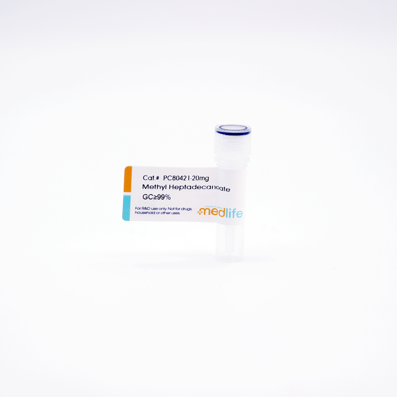 在脂质组学与代谢分析领域,Methyl Heptadecanoate(十七烷酸甲酯)正以 “内标级脂质标准品” 的身份,成为解析脂代谢通路、验证脂质检测方法的 “基准研究工具”!作为一种非天然偶数碳脂肪酸甲酯(十七碳结构),它因 “结构稳定、无内源性干扰” 的特性,完美适配动物、植物、微生物的脂质定量分析 —— 既能作为内标校准质谱检测偏差(定量误差<3%),又能模拟脂肪酸代谢中间产物,为脂类合成、β- 氧化等机制研究提供 “可追踪、可对比” 的模型,让脂质研究从 “定性描述” 迈向 “定量精准化”!
