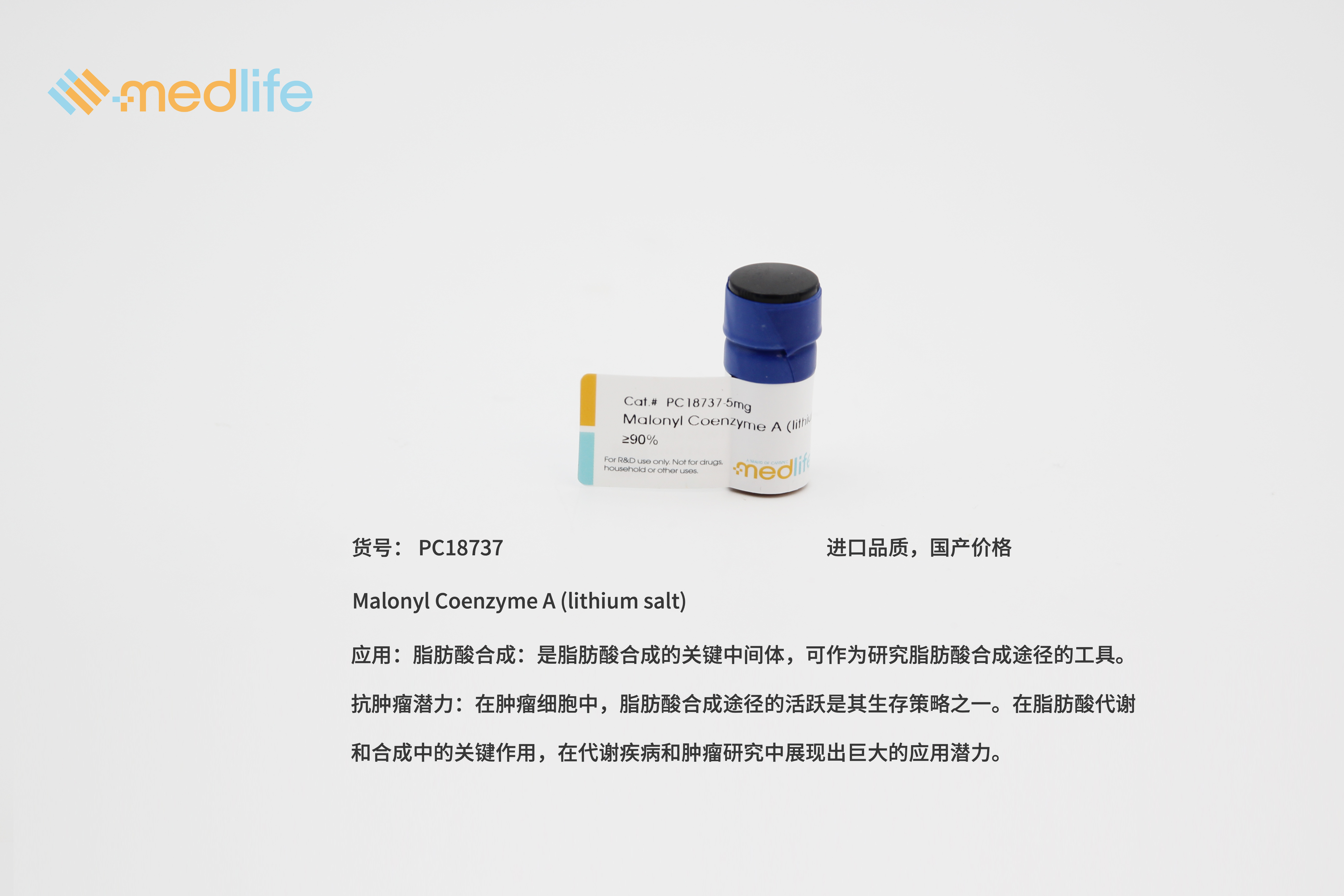 在脂代谢与生物合成研究领域,Malonyl Coenzyme A (lithium salt)(丙二酰辅酶 A 锂盐)正以 “脂质合成启动子” 的身份,成为解析脂肪酸合成、调控脂代谢通路的 “关键研究工具”!作为脂肪酸合成的核心前体(每延伸两个碳链需消耗 1 分子丙二酰辅酶 A),它能精准参与脂肪酸合酶(FAS)催化的链延长反应,而锂盐形式赋予其优异的水溶性(100mg/ml)和化学稳定性(-20℃储存 6 个月活性保留率>95%),完美适配体外酶反应、细胞代谢标记等多种实验场景。无论是追踪脂肪酸碳链延伸过程,还是验证脂代谢调控因子的作用机制,它都能提供 “可量化、高活性” 的底物支持,让脂代谢研究从 “通路推测” 走向 “精准验证”!