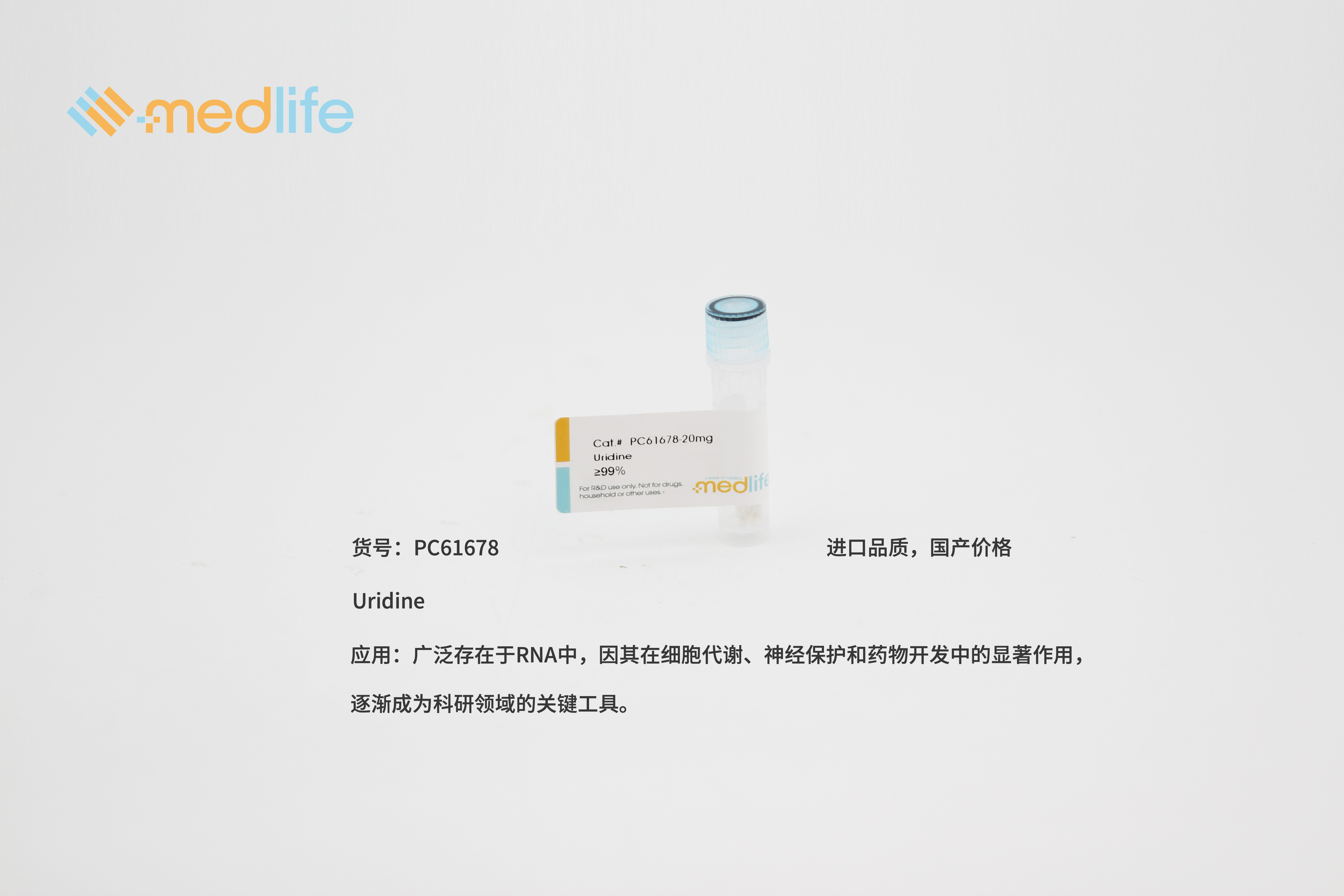 Uridine (β-Uridine) 是一种核苷化合物, 由尿嘧啶与核糖环组成, 两者由β-N1-配糖键相连。Uridine (β-Uridine) 是一种核苷化合物, 由尿嘧啶与核糖环组成, 两者由β-N1-配糖键相连。