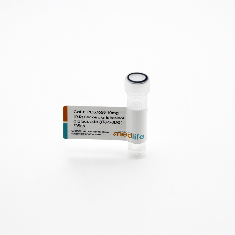 (R,R)-Secoisolariciresinol diglucoside ((R,R)-SDG) 是亚麻籽中存在的 Secoisolariciresinol diglucoside 的次要亚型。(R,R)-Secoisolariciresinol diglucoside ((R,R)-SDG) 具有抗氧化性、清除自由基活性和 DNA- 辐射保护性。(R,R)-Secoisolariciresinol diglucoside ((R,R)-SDG) 能通过抑制炎症细胞中的过氧化物酶和氯化循环来抑制髓过氧化物酶 (MPO) 的活性。