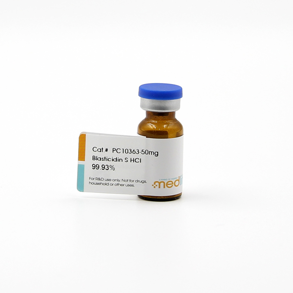 在细胞生物学、微生物学及基因工程研究领域,精准筛选目标细胞、验证基因编辑效率,是推动实验进程与确保结果可靠性的关键环节。Blasticidin S hydrochloride(盐酸杀稻瘟菌素 S) 作为从链霉菌(Streptomyces griseochromogenes)中分离的核苷类抗生素,凭借独特的跨物种作用优势 —— 既能抑制原核细胞(如细菌)蛋白质合成,也可阻断真核细胞(如哺乳动物细胞、酵母)的翻译过程,成为科研人员开展细胞抗性筛选、基因编辑验证、微生物抑制实验的 “高效工具试剂”,为从细胞层面到微生物层面的多领域研究提供精准可控的干预手段。