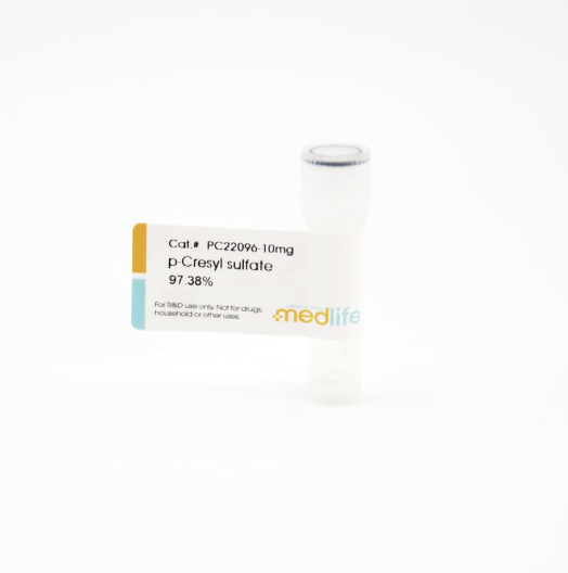 在肾脏生理学、毒理学及代谢疾病研究领域,尿毒症毒素的蓄积机制与致病效应是解析慢性肾脏病(CKD)及其并发症(如心血管损伤、神经功能障碍)的核心切入点。p - 甲酚硫酸盐(p-Cresyl sulfate,PCS)作为肠道菌群代谢产生的代表性蛋白结合型尿毒症毒素,凭借其在 CKD 患者体内的高蓄积性、多器官毒性及与疾病进展的强关联性,成为科研人员探索肾脏 - 肠道轴互作、毒素致病机制及靶向干预策略的 “核心工具”,为从基础机制到临床转化的肾脏疾病研究提供精准支持。