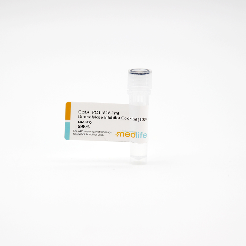Deacetylase Inhibitor Cocktail(100× in 70% DMSO)作为一款专为科研设计的广谱去乙酰化酶抑制剂混合物,通过协同抑制多类去乙酰化酶家族,为研究者提供稳定、高效的乙酰化环境支撑,成为解析生命调控机制的关键工具。