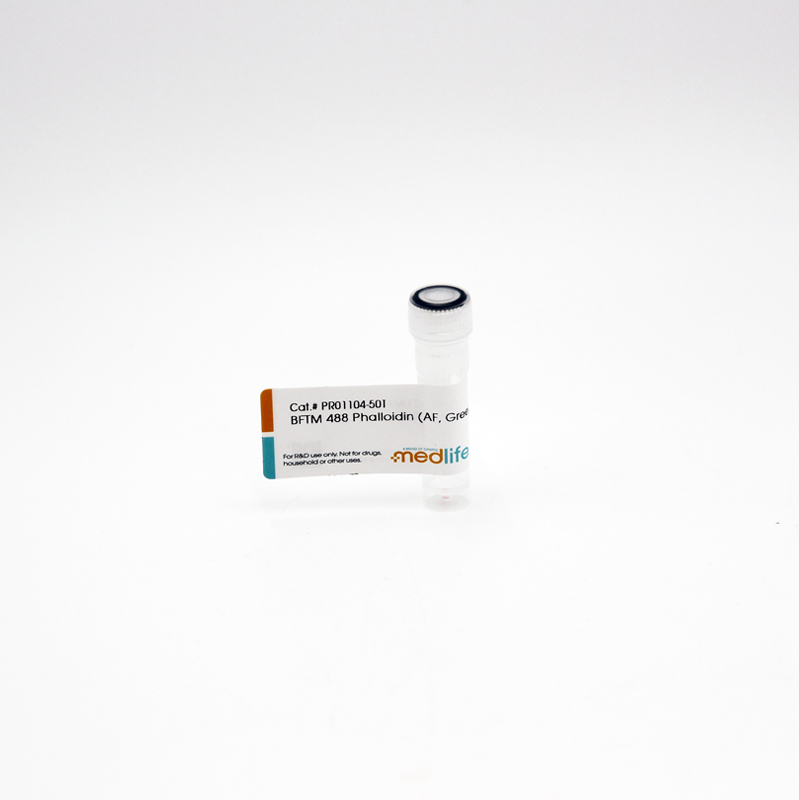 在细胞生物学研究中,肌动蛋白(Actin)作为细胞骨架的核心成分,其动态变化直接参与细胞分裂、迁移、形态维持等关键过程。然而,传统抗体标记法存在非特异性结合、背景干扰强等问题,限制了高精度成像的实现。BFTM 488 Phalloidin (AF, Green)作为一款基于鬼笔环肽(Phalloidin)的荧光探针,凭借其高特异性、高对比度及绿色荧光特性,已成为细胞骨架成像领域的“黄金标准”。