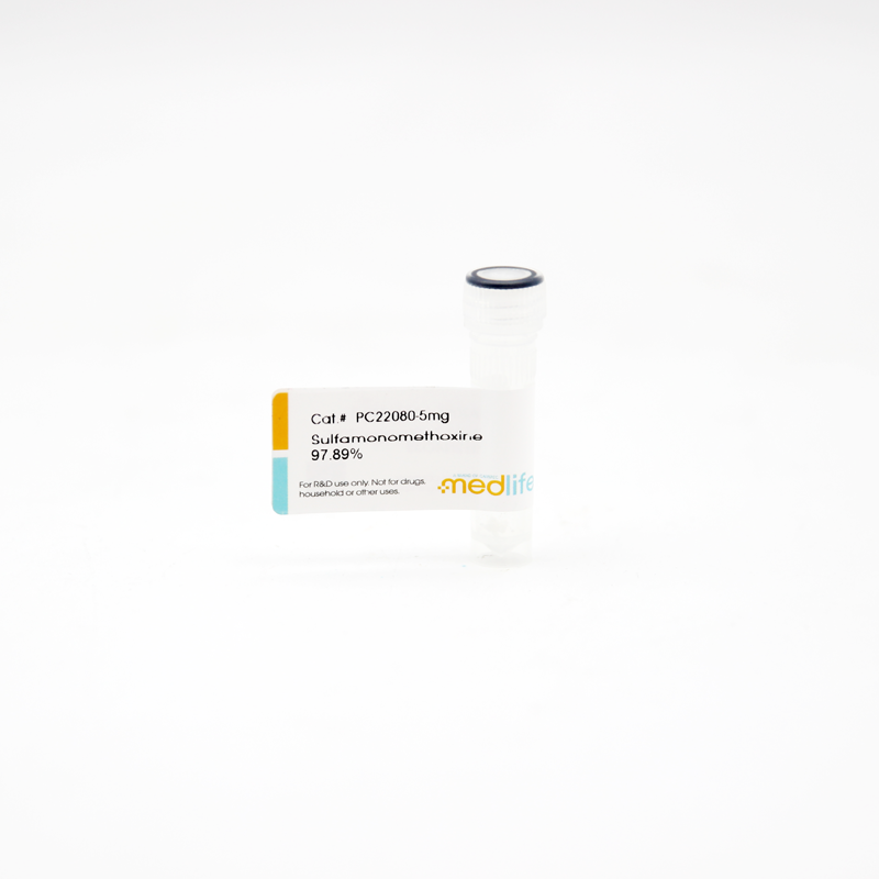 磺胺间甲氧嘧啶 Sulfamonomethoxine 是一种长效的磺胺类抗菌剂。Sulfamonomethoxine 可用于血液动力学研究,竞争性抑制剂二氢叶酸合成,从而阻断叶酸合成。
