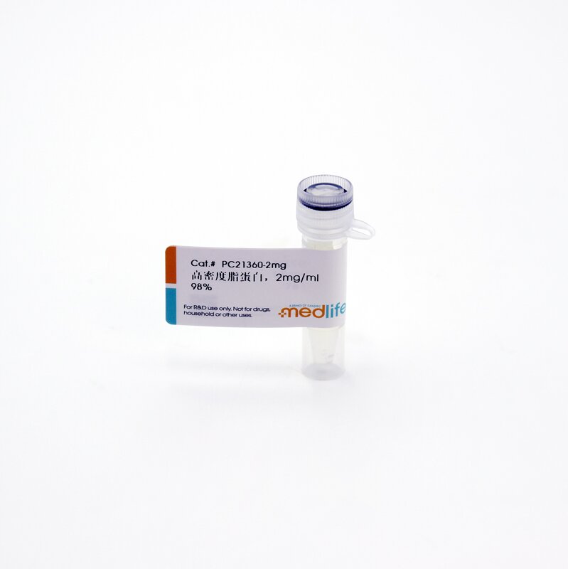 本品为人源高密度脂蛋白(Human High Density Lipoprotein, Human HDL),来自健康人源血浆,超速离心纯化获得,通过琼脂糖电泳检测其均匀性和纯度。无菌包装,可以直接稀释使用。