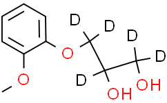 Guaifenesin-d 5 is the deuterium labeled Guaifenesin. Guaifenesin (Guaiacol glyceryl ether), a constituent of guaiac resin from the wood of Guajacum officinale Linné, is an expectorant. Guaifenesin can alleviate cough discomfortby increasing sputum volume and decreasing its viscosity, thereby promoting effective cough. Guaifenesin also has narcotic effect[1][2].