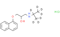 Propranolol-d 7 (hydrochloride) is a deuterium labeled Propranolol hydrochloride. Propranolol hydrochloride is a nonselective β-adrenergic receptor (βAR) antagonist, has high affinity for the β1AR and β2AR with Ki values of 1.8 nM and 0.8 nM, respectively[1]. Propranolol hydrochloride inhibits [3H]-DHA binding to rat brain membrane preparation with an IC50 of 12 nM[2]. Propranolol hydrochloride is used for the study of hypertension, pheochromocytoma, myocardial infarction, cardiac arrhythmias, angina pectoris, and hypertrophic cardiomyopathy[3].