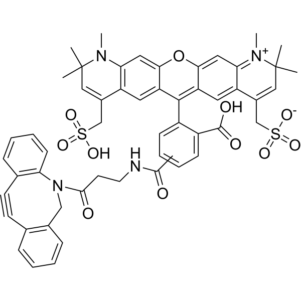 AF594DBCO是一种结合AF594红色荧光染料和DBCO (dibenzocyloctyne) 的荧光标记试剂。DBCO是一种常用的化学生物标记基团。AF594DBCO (激发波长约 590 nm,发射波长约 617 nm) 可用于标记蛋白质、细胞和其他生物分子,用于荧光成像和流式细胞术检测。